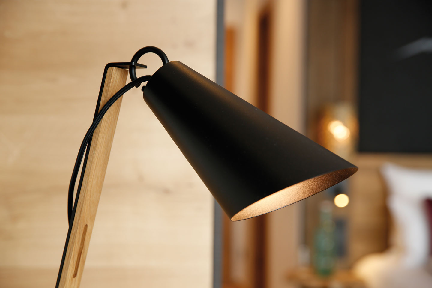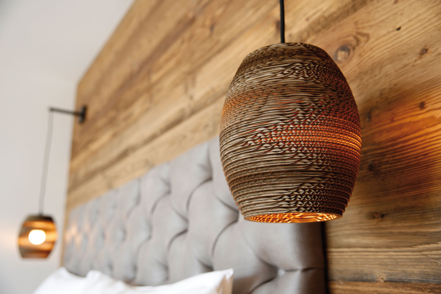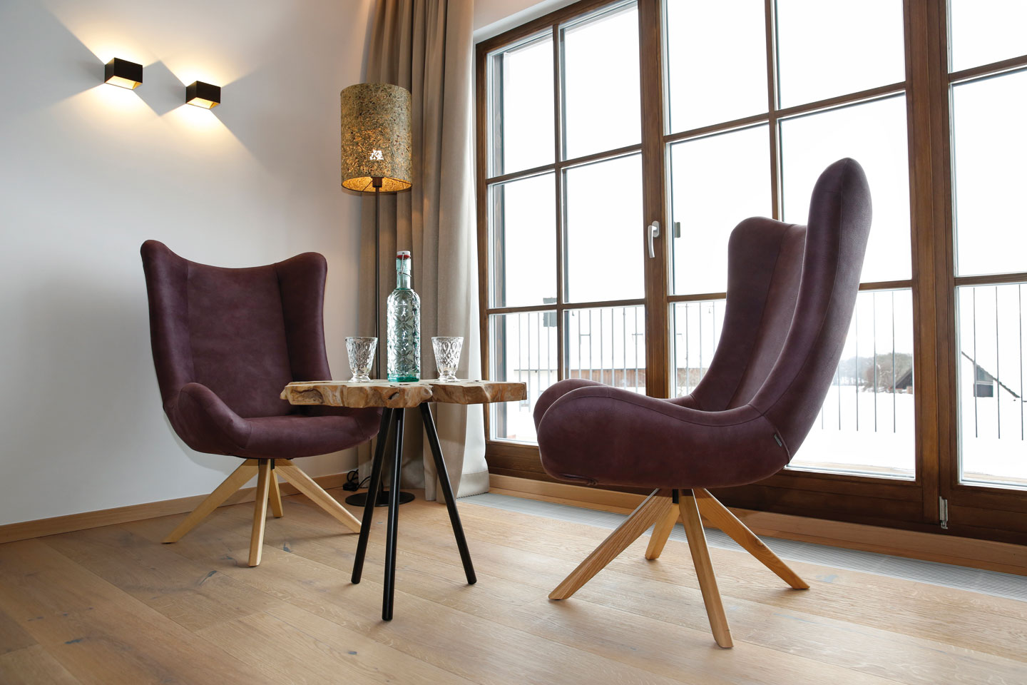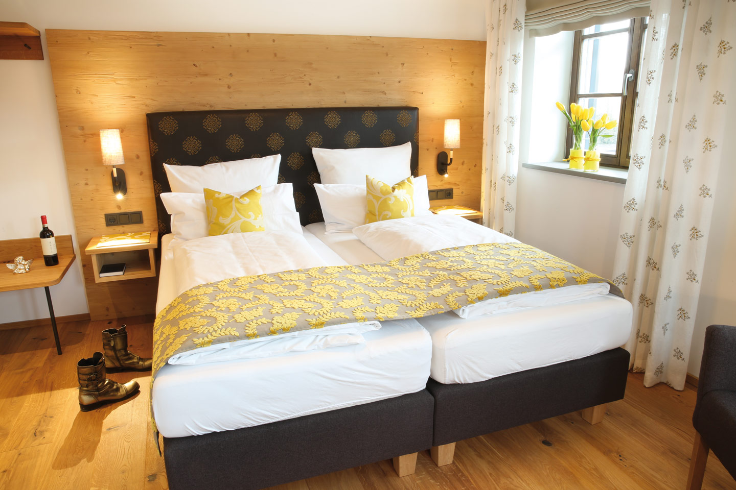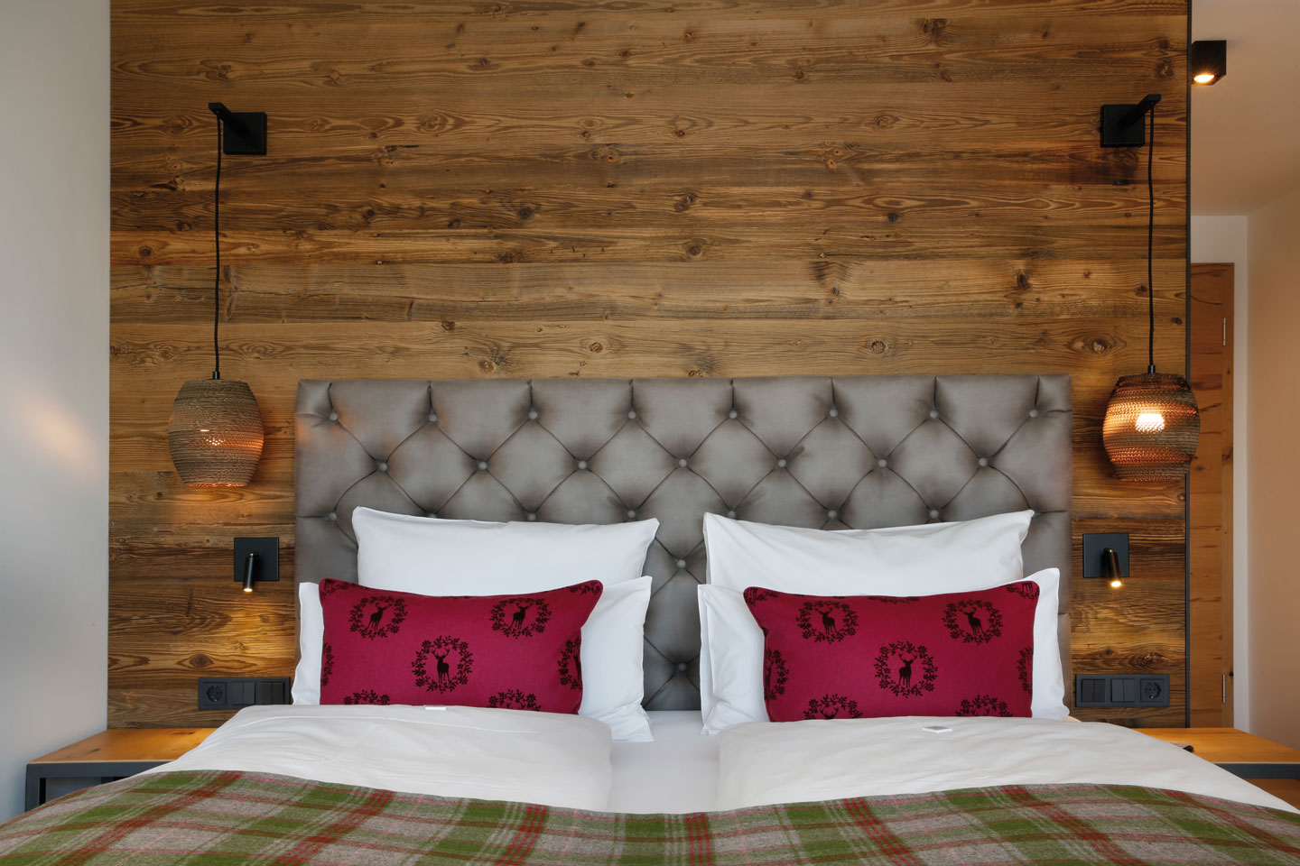 | ausgestattet mit Fichte Altholz, warme Farben und hochwertigen Stoffen | ||